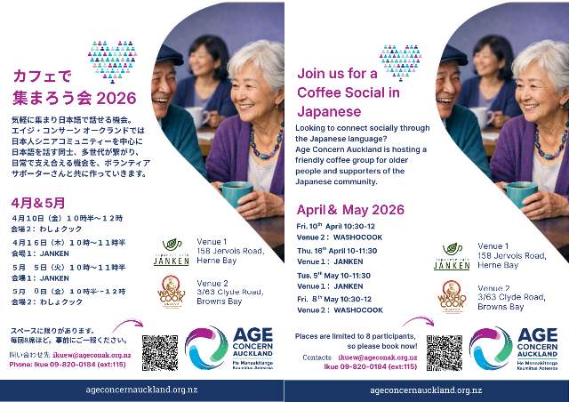 主催者:非営利団体エイジコンサーンオークランド:Social Connection Team 日本人コミュニティーコネクター