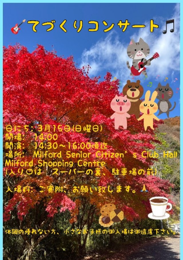 3月15日(日曜日) ライブ: 午後2:30から4:00頃(開場: 午後2:00)