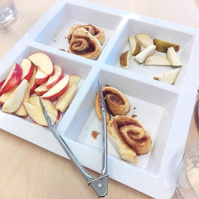 日本の保育園では、給食は12時にお昼ごはん、3時におやつの2回でした。(2歳以上のクラス)