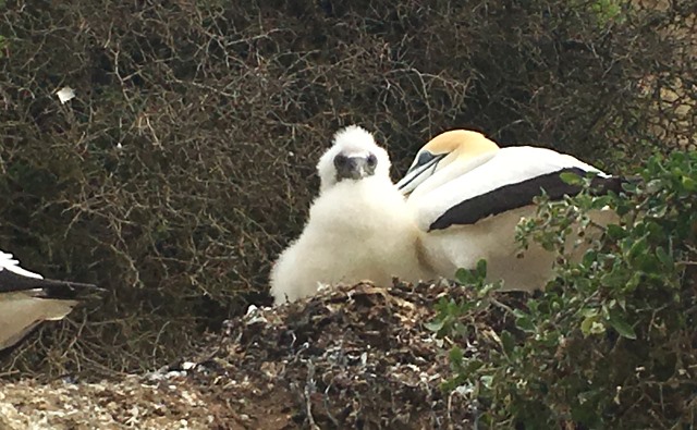 またカツオドリ観察のベストシーズンは、11月上旬〜2月下旬まで。この時期は、カツオドリが雛を育てる時期◎大人くらい大きいのにフサフサの毛をまとったカツオドリの雛! 是非みなさんも間近で観察してみてください。