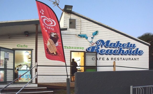 Maketu Beachside Cafe & Restaurant のお店ではローカルに人気のフィッシュ&チップスがいただけます。