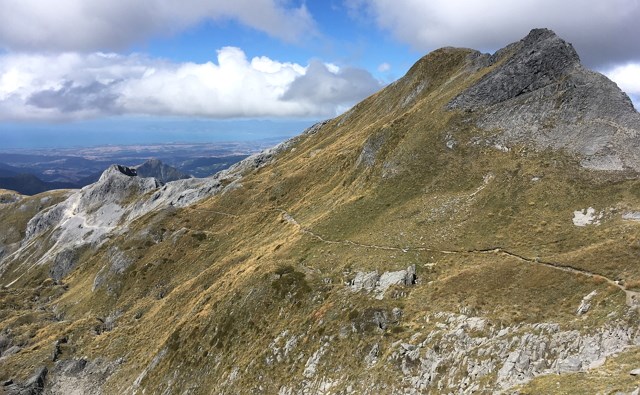 山の上にも関わらず南国チックな植物が生えている樹林帯、黄金に輝く草が揺れる美しい荒原、お花畑、山頂付近のゴツゴツした迫力ある岩場、遠くには青く透き通る tasman bay、そしてカフランギ国立公園の美しい山並み。