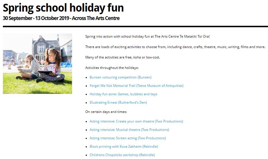 クライストチャーチ市内でも様々なイベントが行われますが、今回はThe Arts Centreで開催される『Spring School holiday fun 』をご案内します!
