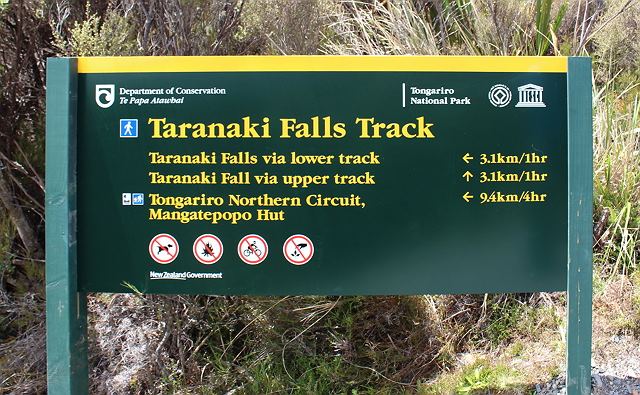 トンガリロフォールの正式名称は「Taranaki Falls」です。コースは「lower track」と「upper track」の2種類あります。下から向かって上から帰るか、上から向かって下から帰るか、の違いなので、どちらのコースも絶対通ります。オススメは最初に「lower track」を通るコースです!理由は後ほど説明します。