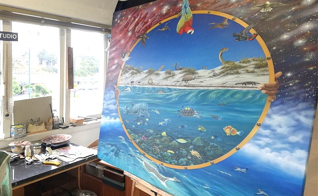 オーストラリアのアボリジニアートに込められた意味をお話して下さったり、日本の水墨画からインスピレーションを受けて取り入れた作品も見せて下さいました。
