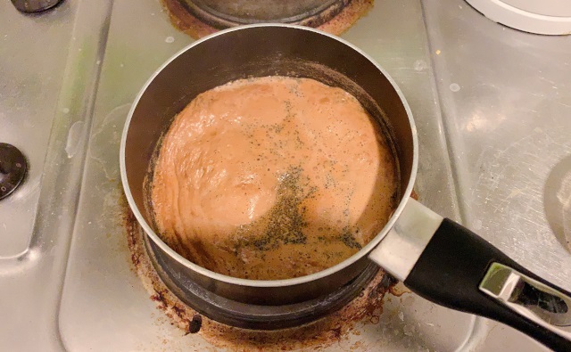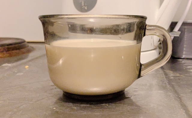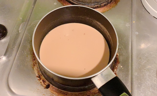 たてるときに注意なのが一気に温めると脂肪分が固まってしまって、濃さがなくなってしまうのでこまめに鍋を覗いて少し鍋を回してあげるといいと思います。