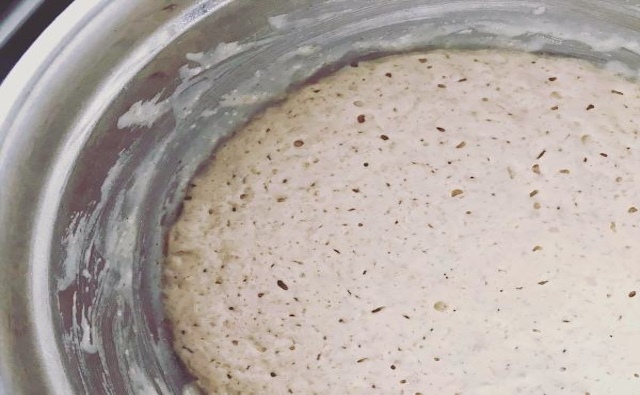 - 4.生地が2倍にふくらみ、表面にポツポツと穴が空いてきたら発酵完了。