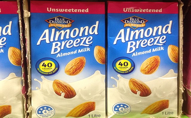 アーモンドミルクです。Lactose intoleranceとは別に動物性の食品を食べないヴィーガンの人に人気です。
