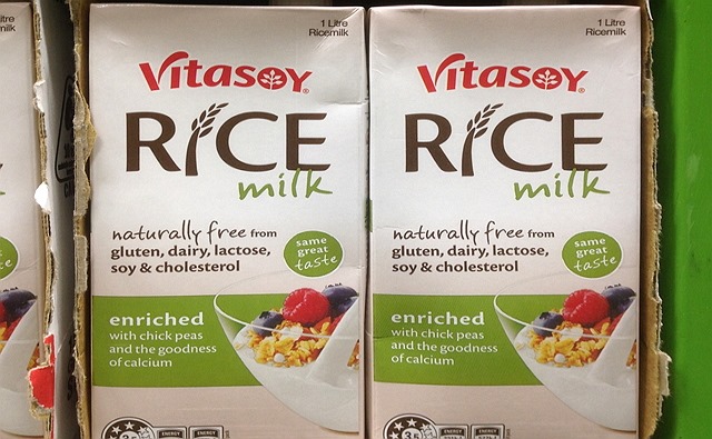 これはライスミルク。牛乳と比べると低脂肪でコレステロールも含みません。しかし原料がお米なので、炭水化物を多く含みます。