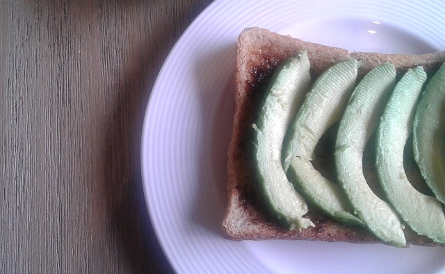 トーストしたパンに、バターとベジマイトをぬって、アボカドをのせて出来上がり。