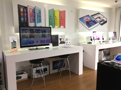 店内も広々していて清潔感もあります。ケーブルやケース等も販売されており、Apple製品であればここで何でも揃いそう。店員さんもとても愛想の良い接客でした。