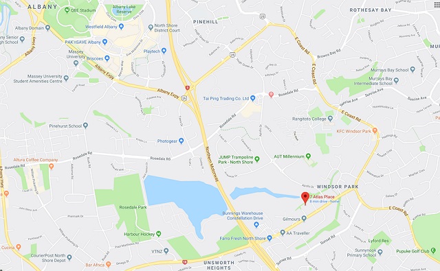 ノースショアのMairangi Bayというところにあり、Northern Motorway 1とUpper Harbour Motorway 18が交差する場所に位置するため、アクセスが簡単です。