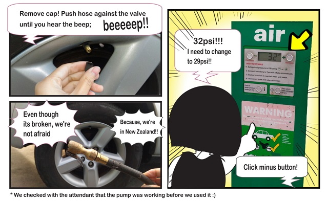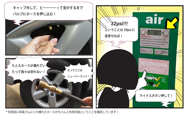 ニュージーランドでは psi が空気圧単位として採用されているので、我が車の 200 kPa は、29psi となります。