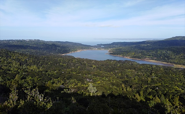 左奥にはオークランド空港があり、白く飛行機が飛び立つ姿が見えました。