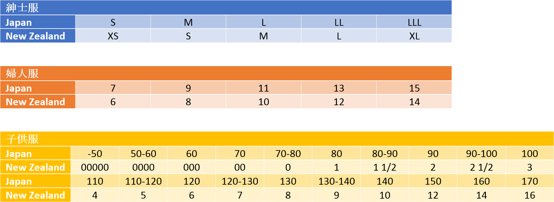 皆さんは、ニュージーランドで服などを買う時、サイズがわからなくて困った経験はありませんか?