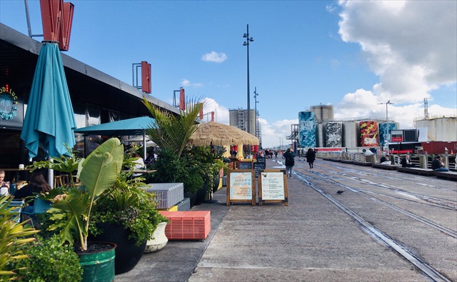 オークランド・フィッシュマーケットがある一帯は、オイスターや新鮮な魚介類が使われたピザ、タイ料理などのレストランやバーがあり、この場所ならではの食事ができます。