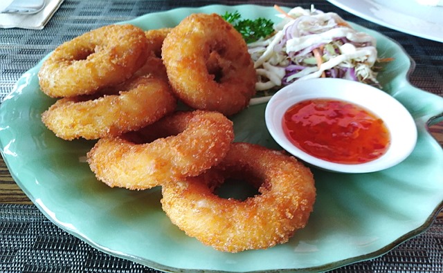 カラマリは、想像と違って日本のイカ・リングのフライのようでしたが、懐かしくて楽しめました。