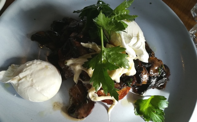 写真はフレンチトーストと、ベジタリアンメニューのマッシュルームとポーチドエッグです。