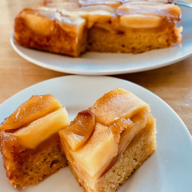カラメルとリンゴの相性が抜群のアップサイドダウンアップルケーキ。