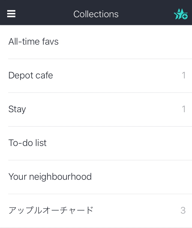 - お気に入りは地図に表示されず画面左上のアイコンからCollectionsに保存していく。
