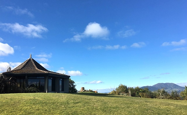 こちらは一般家庭ではなく、会議や宿泊施設として運営されているところです。最大60人が泊まれる広い敷地に、ちょっとした森の散歩道やキャンプサイトっぽいところなど、自然が豊か。なにより、タウハラセンターから見渡せるタウポ湖の眺望が最高です。